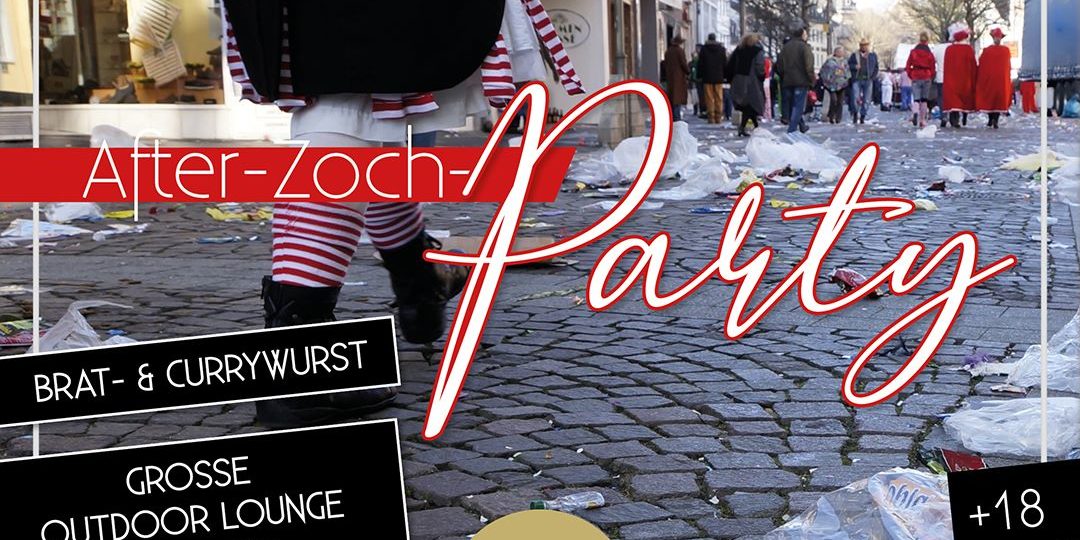 Kommt am 19.02.2023 ab 17 Uhr zu uns zur großen After-Zoch-Party! Einlass ab 18 Jahren, Eintritt 5€. Feiert mit uns auch in der großen Outdoor Lounge mit Theke! Als Stärkung bieten wir Brat- & Currywurst, damit Ihr wieder Kraft zum feiern habt bis in die Morgenstunden. Alaaf !!!