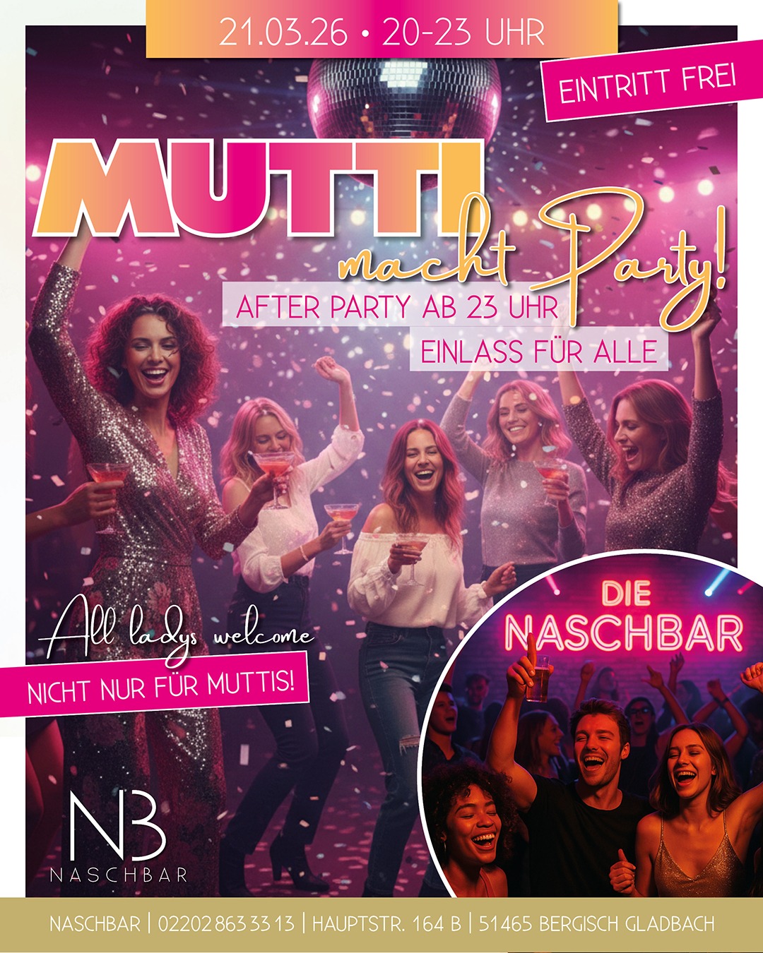 Am 21.03.2026 ist es wieder soweit: Die Mutti Party geht in die nächste Runde in der Naschbar! 💃✨